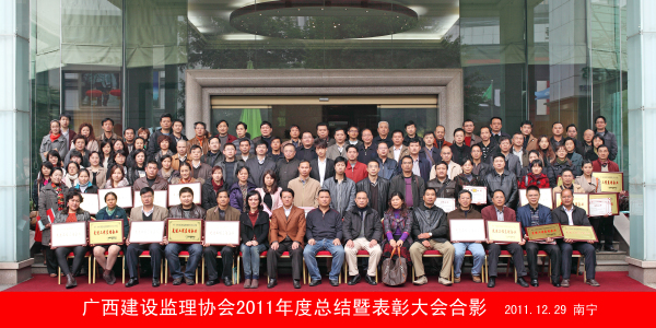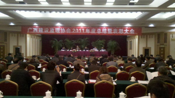 2011年12月29日上午,廣西建設監理協會2011年度總結暨表彰大會在廣西南寧飯店隆重召開。各工程監理企業、會員單位等130多人參加了會議。廣西民間組織管理局梁維平局長、廣西住房和城鄉建設廳建管處韋可奎副處長、人教處甘梅華副處長等領導出席了本次會議,會議由廣西建設監理協會秘書長羅馨主持。