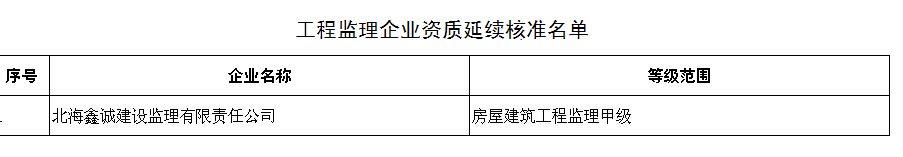 在住房城鄉建設部公布的關于核準2015年第七批建設工程企業資質資格延續的公告中(建市資函[2015]50號),我區監理企業資質審批情況如下:
